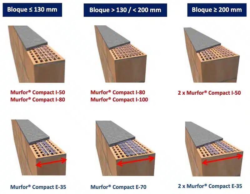 Murfor® Compact é um reforço de alvenaria em aço de alta resistência que melhora a capacidade de tração de paredes e muros de fábrica. É um produto inovador que, graças ao seu design e formato, otimiza o processo de construção, facilitando o manuseamento e a colocação em obra. É apresentado em rolos de reforço de alvenaria compostos por uma malha de cordões de aço galvanizado ou inoxidáveis, unidos com fibra de vidro tecida. Utilizado com êxito em diferentes países europeus para todo o tipo de aplicações estruturais.